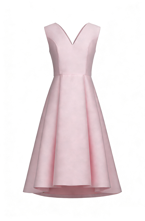 · 深V心形领与裙摆,尽显意式曲线剪裁的精湛工艺