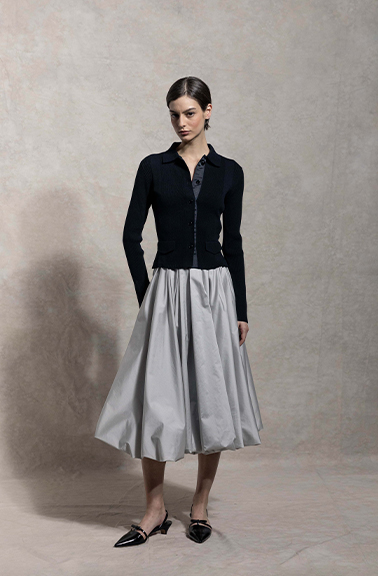 灰色长款云朵裙,双层设计营造梦幻层次感。