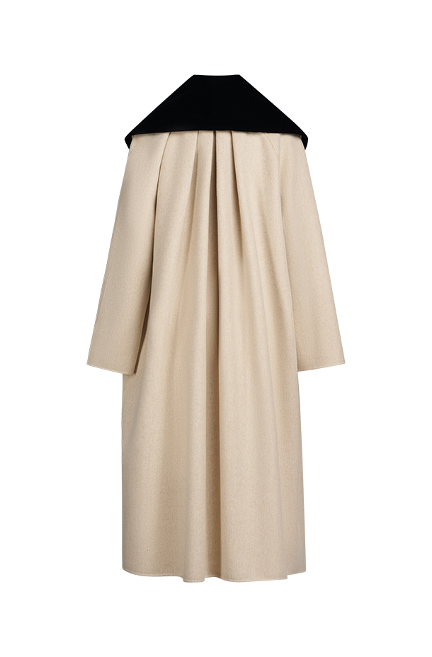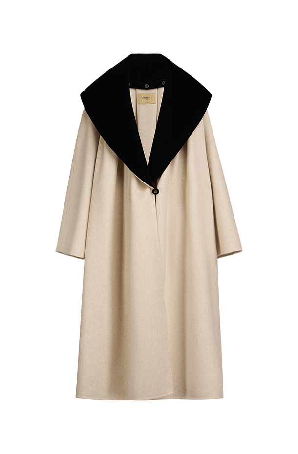 高品质双面羊毛呢,保暖又轻盈。黑丝绒翻领可拆卸,穿搭灵活多变。黑米撞色设计,经典耐看。适配多场景,兼具日常与通勤氛围。面料A:山羊绒100%(连接线除外)面料B:粘纤66% 铜氨纤维32% 氨纶2%