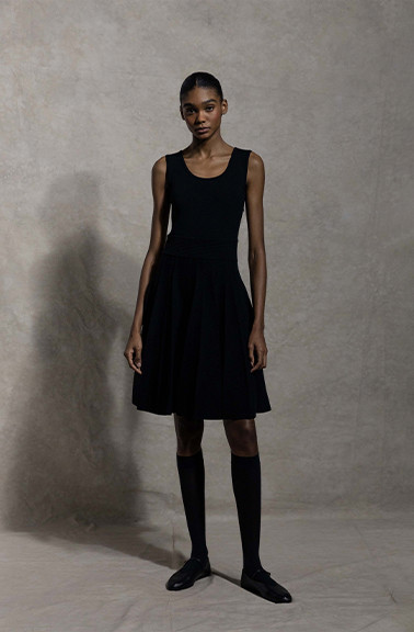② 采用CURIEL传承系列TUBINO裙型心心领设计元素的沙丘色吊带连体服