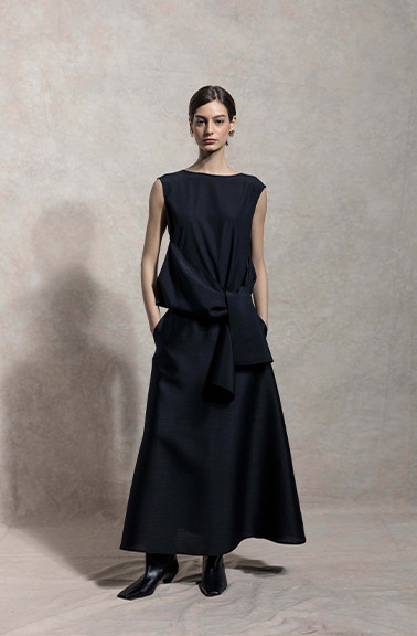 ③ 背面V领的设计使后背线条更加优美,整体设计既保留了精致的细节,又展现出一种轻松