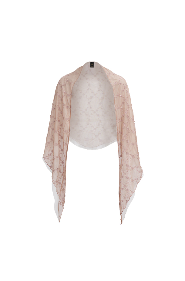 ② 浅粉色刺绣图案融入了CURIEL的logo,与白色网纱的撞色设计,为整体造型增添了一份