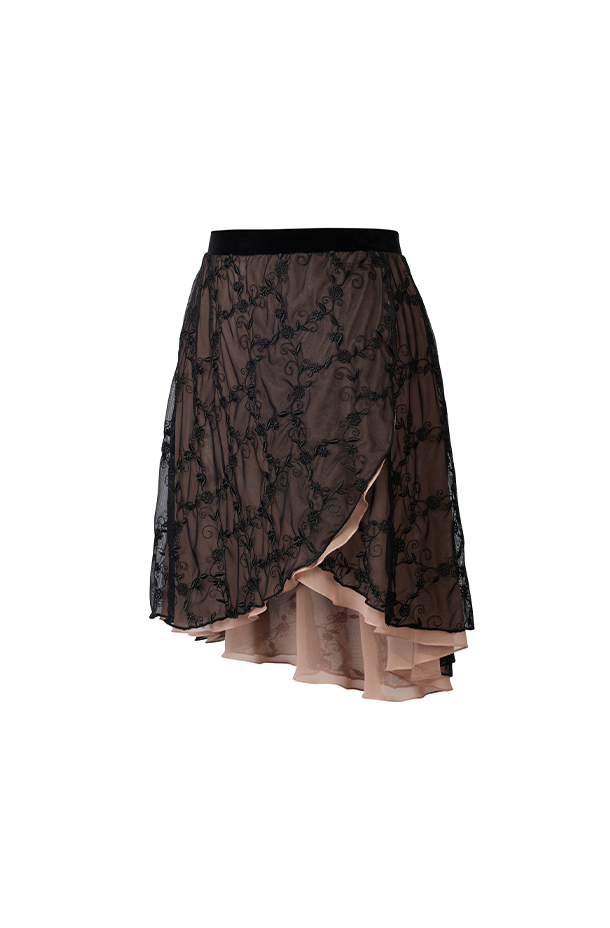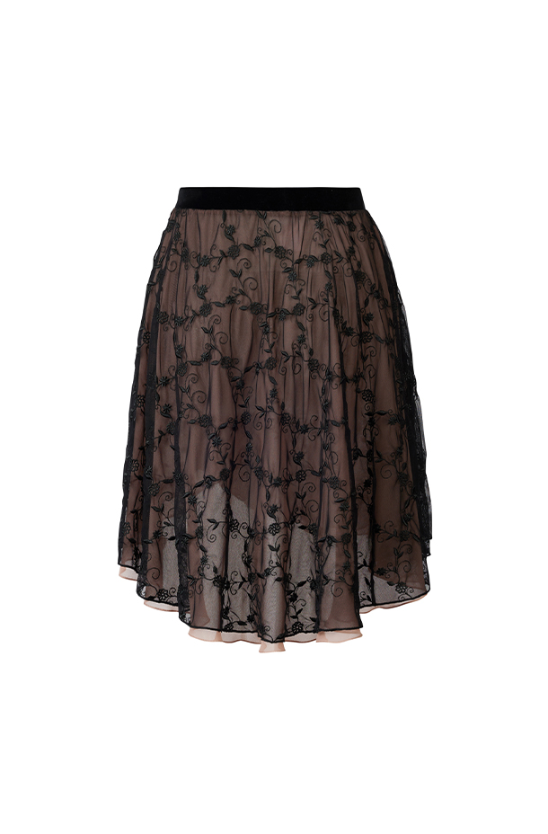 ② 黑色刺绣图案融入了CURIEL的logo,与粉色网纱的撞色设计,为整体造型增添了一份复