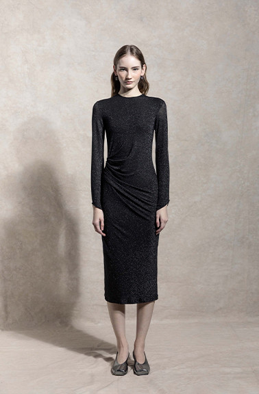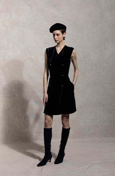 ④ 雾黑色丝绒弹力松紧腰节,穿着舒适