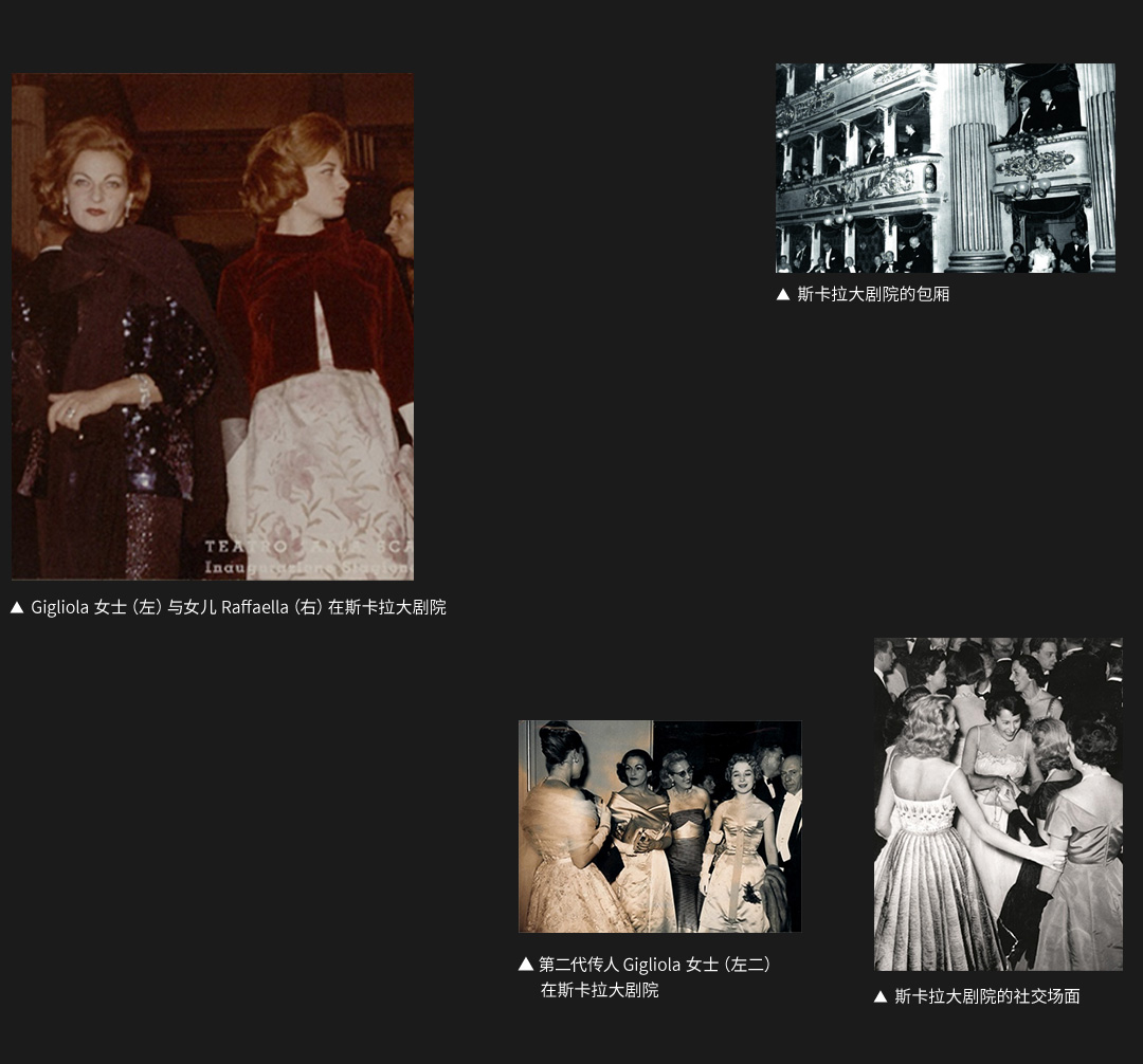 50年代,剧院成为欧洲上流社会的重要社交场所。CURIEL伴随了世界四大歌剧院之一——米兰斯卡拉大剧院的战后重建,并从1954年起向列席的贵族名媛提供观戏礼服定制服务。此后,Gigliola女士开始为各大歌剧的首演定制戏服,代表作为《阿依达》与《茶花女》。