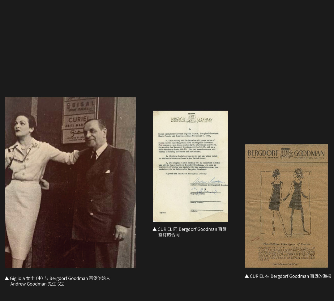Gigliola女士是致力于以全球化视野推动意大利制造的先锋。1960年,CURIEL成为第一个进驻伦敦精品百货Harrods与纽约精品百货Bergdorf Goodman的意大利品牌。