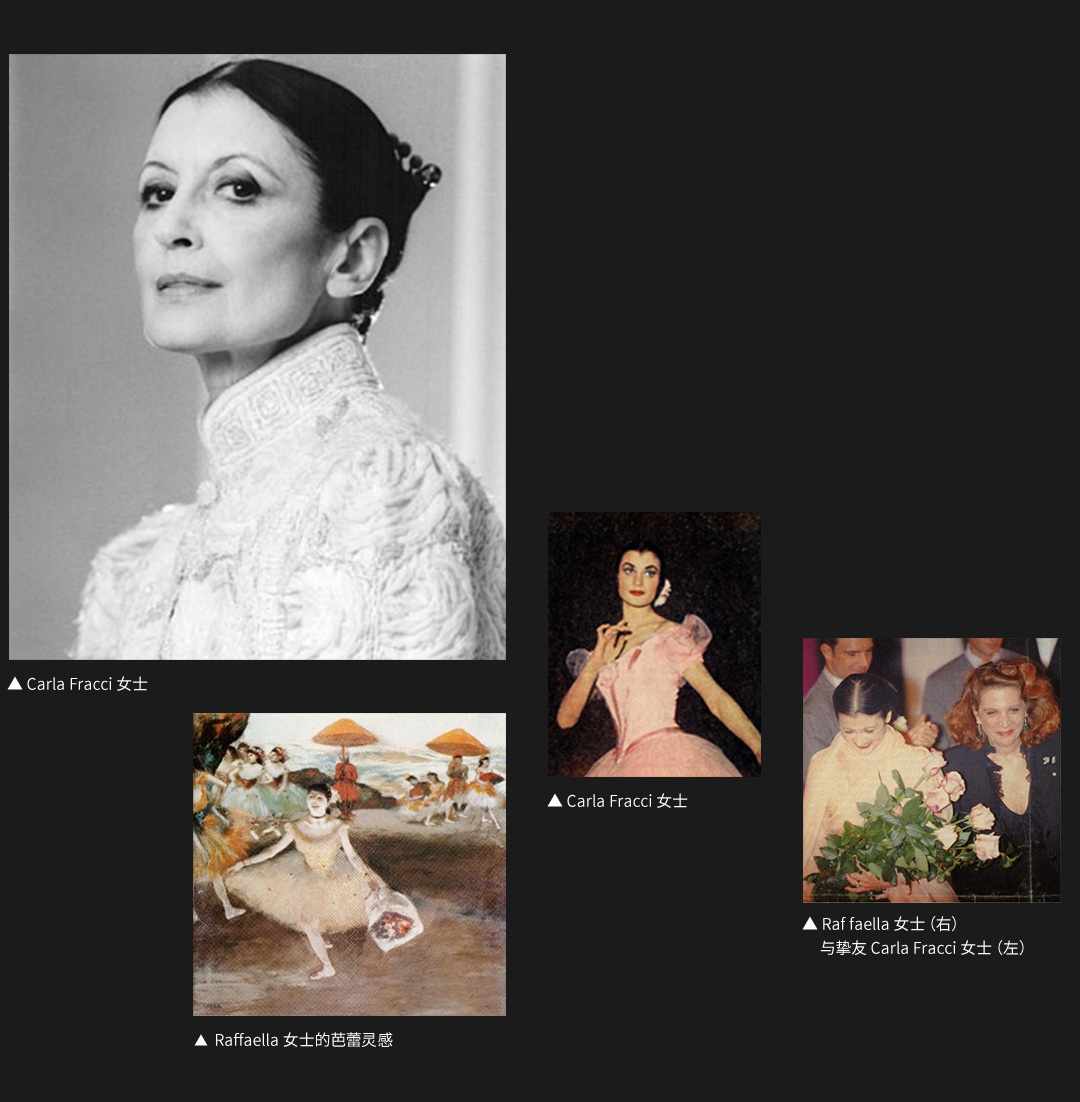 80年代,Raffaella女士以造型师的身份结识了意大利芭蕾明星Carla Fracci女士,二人成为终生挚友。这段友谊启发了Raffaella女士的创作灵感,CURIEL亦从此与芭蕾结缘。