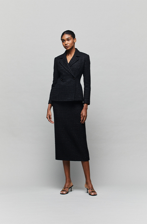 · 精致的黑色花呢提升整体质感