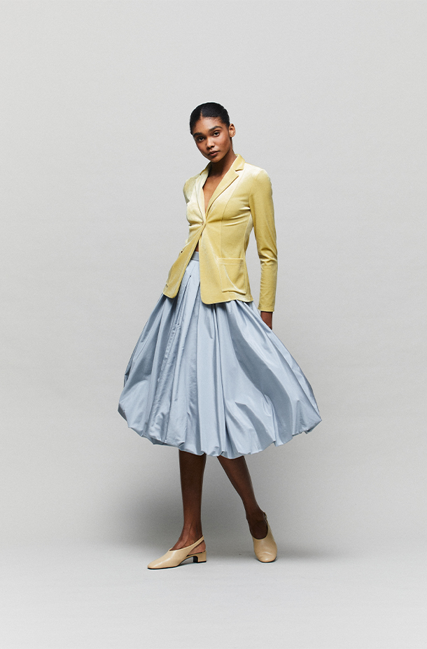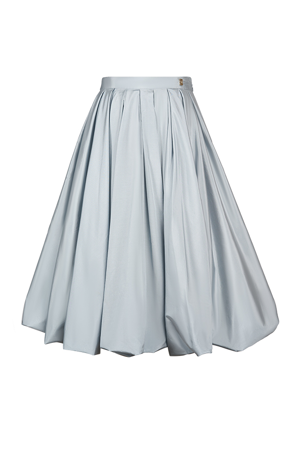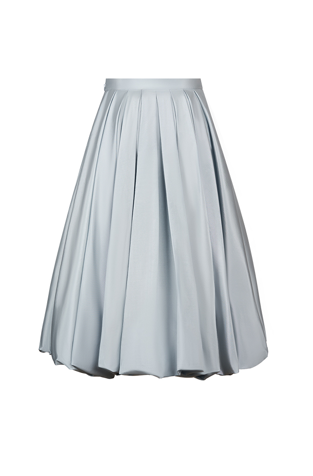 这款海盐蓝色长款云朵裙以双层设计独具匠心,外层轻盈的面料覆盖在里层之上,巧妙地营造出梦幻的云朵效果· 高密度丝绸和涤纶塔夫塔混纺面料· 温柔清冷的海盐蓝色低调又日常,适合多种场合的穿着· 裙摆随着每一步轻盈摆动,宛如云朵般飘逸,令穿着者在任何场合都能自信而迷人