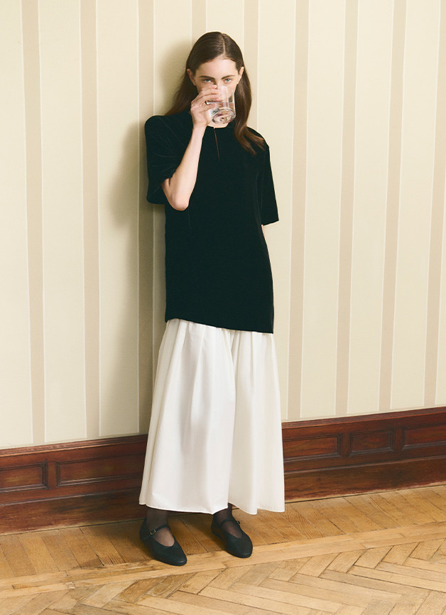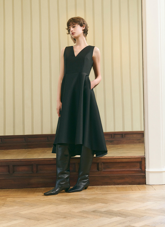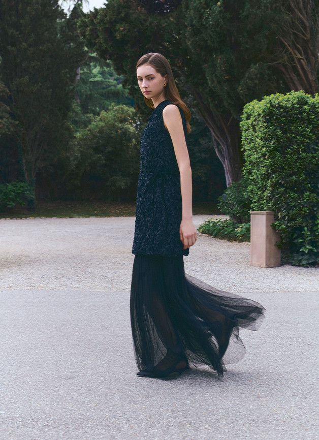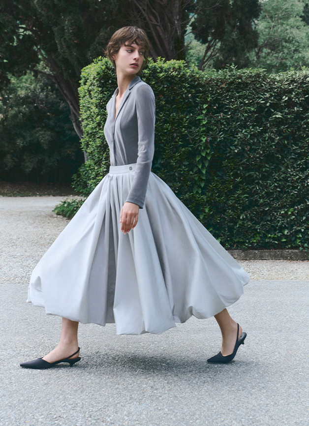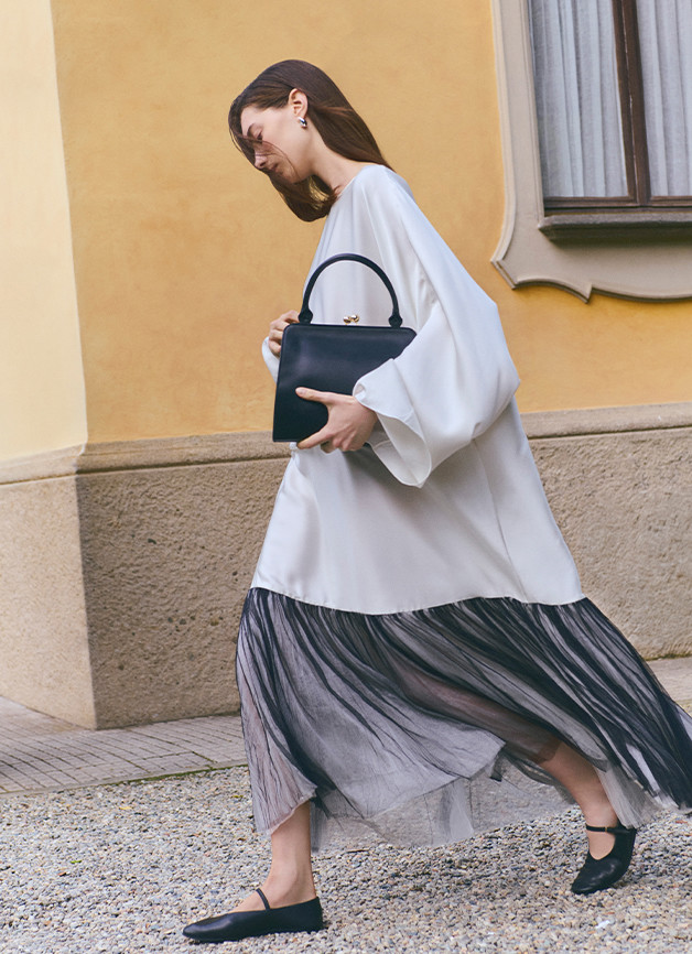 系列中,品牌标志性典藏设计迎来全新升华。Hepburn以更流畅的剪裁延续优雅传奇,Tulip摆绽放出摩登活力,Nuvola的立体褶皱捕捉着晨雾的瞬息之美。这些跨越四代的传世之作——Hug, Diva, Aria 和 Lioness——皆以当代匠心将经典廓形与现代穿着哲学完美平衡,每一件单品都成为穿着者的气质外化。